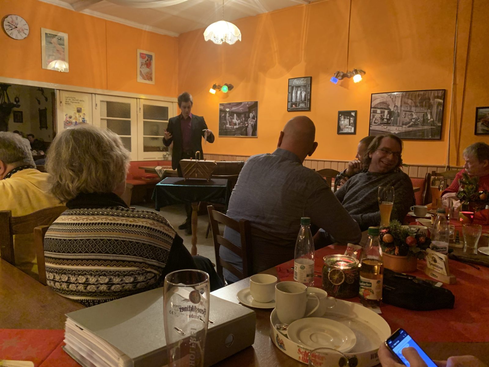 24 skatbegeisterte Spieler und deren Begleitung konnten bei Entenkeulen, Sauerbraten oder einem Schnitzel und natürlich so einigen Kalt- oder Heißgetränken einen gemütlichen Abend erleben. Nach einem Resümee über den Saisonverlauf des Vereins fand die Ehrung für die Clubmeisterschaft 2023 statt.