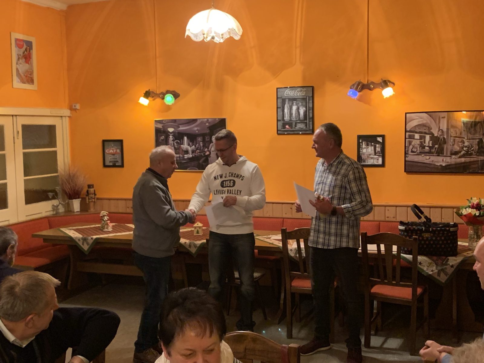 Unser Spielleiter Torsten Neumeister moderierte unnachahmlich durch die Jahresrangliste. Lautes Gelächter war bei seinen lustigen Hinweisen über einzelne Spieler zu hören. Sei es der „Hustenpaule“, „Rennfahrer“, „Baumogul“ oder der Millionär – es war erfrischend und einfach schön. Danke Torsten an dieses Stelle. Nach 2020, 2021 und 2022 gelang es nach 41 Spieltagen auch in diesem Jahr Benjamin Diener, den Pokal mit einem Serienschnitt von 1.221 Punkten zu gewinnen.